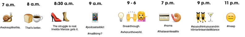 Можно даже сказать, что Emoji – это новый язык общения. Digyday попросил некоторых рекламных креативщиков, стратегов и аккаунт-менеджеров описать свой день с помощью Emojis.