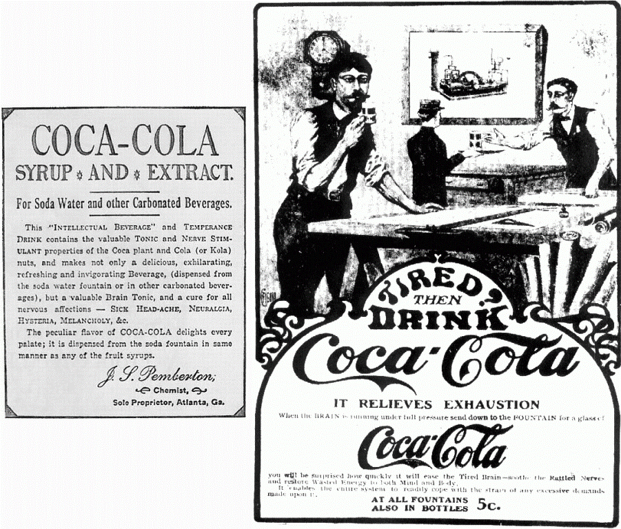 2. Coca-Cola появилась на рынке в качестве укрепляющего нервы тоника, который «снимает усталость». Так напиток позиционировался в рекламе 1886 года.