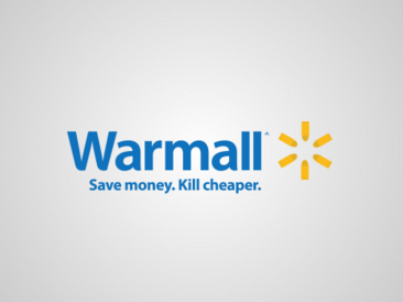 Популярный торговый центр Wallmart превратился в Warmall (букв. «Центр военных действий»). А слоган «Экономь деньги. Живи лучше» – в «Экономь деньги. Убивай дешевле». В период распродаж Wallmart действительно часто превращается в поле битвы покупателей за скидки.