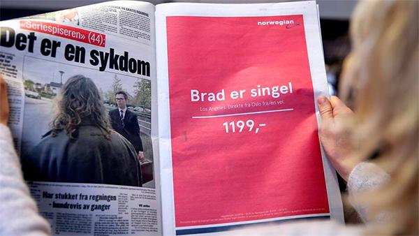 Норвежская авиакомпания использовала развод Брэда Питта в рекламе