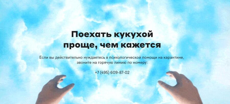 «Мили на поездку кукухой». Сатирическая реклама горячей линии психологической помощи в самоизоляции