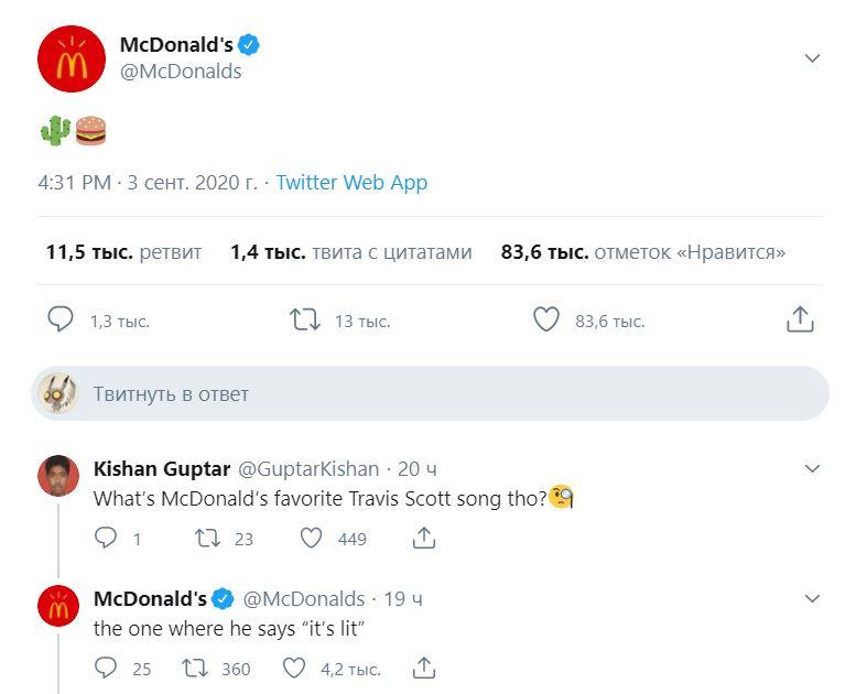 Рэпер Трэвис Скотт известен своими коллаборациями с модными брендами. Теперь музыкант решил освоить новые ниши и объявил о партнерстве с McDonald’s. В меню сети фастфуда появится набор Travis Scott Meal, который включает чизбургер, картофель фри с соусом BBQ и Sprite.