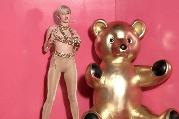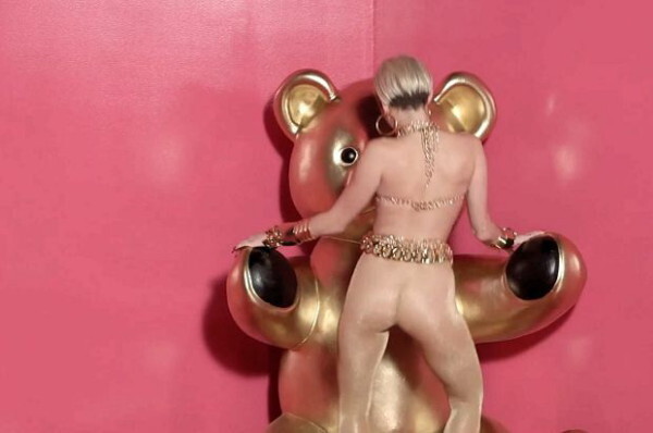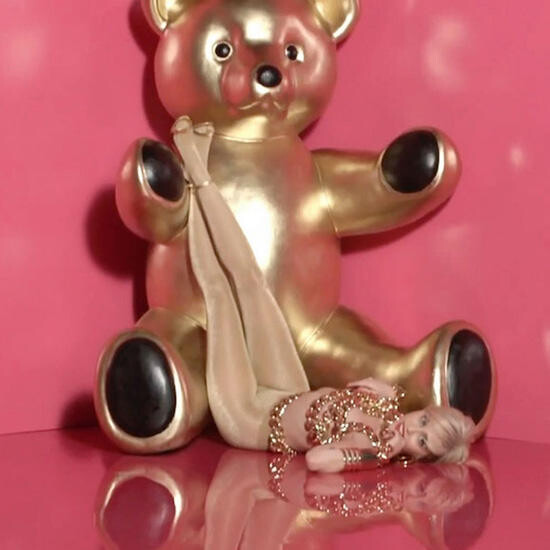 В новом рекламном ролике певица станцевала вокруг громадного надувного медведя, одетая лишь в несколько позолоченных цепочек