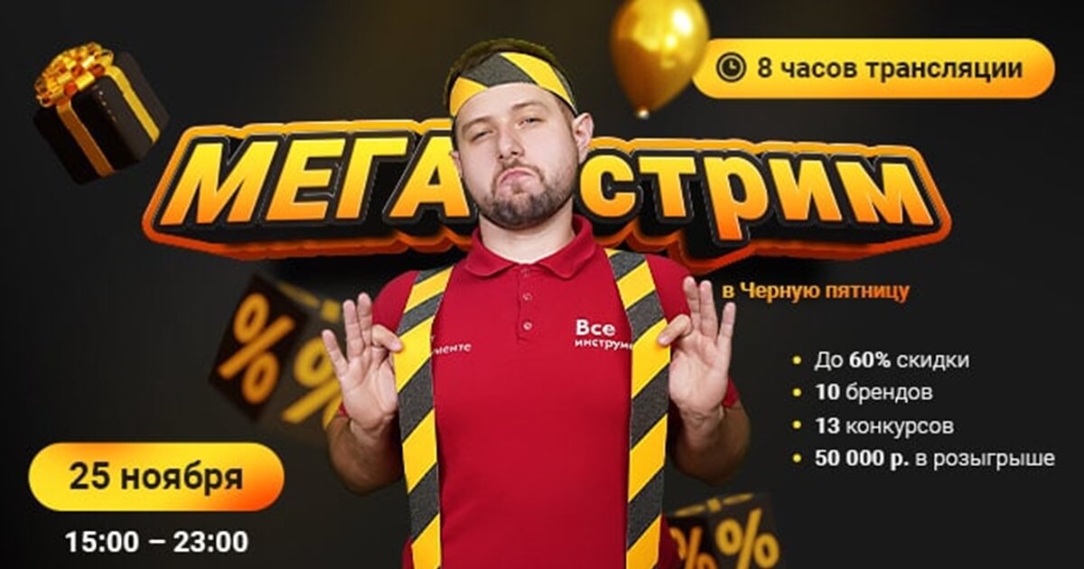 Интернет-магазин товаров для дома и ремонта «ВсеИнструменты.ру» проведетвосьмичасовую распродажу в прямом эфире в «Черную пятницу».