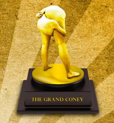 И тут возникает некое противоречие. Когда, например, шутливый альтернативный фестиваль Wrath of Cannes ('Ярость из-за Канн') Coney Island Advertising Freakshow делает концептуальную призовую статуэтку, изображающую, скажем так, - человека, заглядывающего в себя с обратной стороны, - это, в общем, оправдано и целью и смыслом самого события, его изначальным ироничным протестом против благообразности и пафоса официальных Канн.