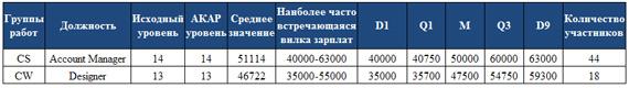 Секция HR-директоров АКАР подвела итоги исследования «Составление таблиц стандартных заработных плат сотрудников рекламных агентств 2010», проведенного по четырем направлениям: медиа, креатив, BTL и Digital. За основу исследования взята методология, разработанная компанией Хэй Групп.
