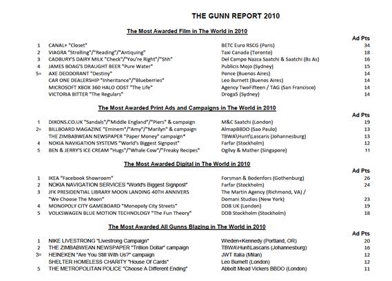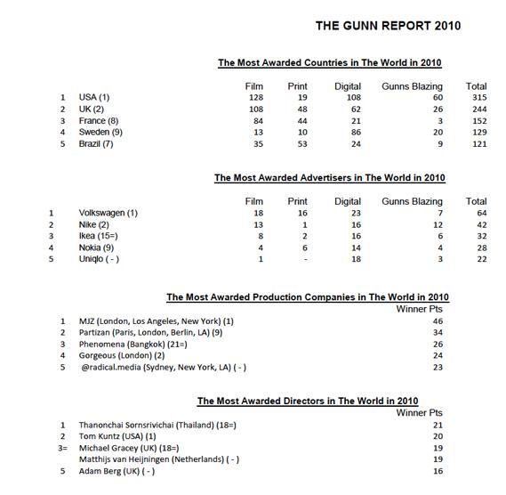 The Gunn Report 2010: Самая награждаемая реклама года