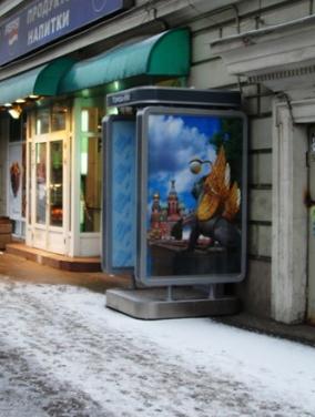 Оператор наружной рекламы XXI век-ТВ оплачивает местную связь горожан за право продавать рекламу на стенах будки - лайтбоксах.