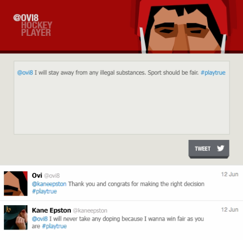 Российским ответом на бриф стал баннер, где начинающие спортсмены могли через Twitter обратиться к своим кумирам с обещанием никогда не использовать допинг и рассказать, почему они не будут этого делать. В баннер также «подтягивались» обещания с хэштегом, которые давались бы непосредственно в Twitter.