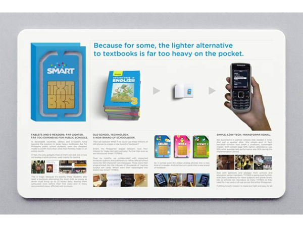 Свой первый Гран-при получили Филиппины в категории Mobile, существующей второй год. Победителями стали DDB DM9JaymeSyfu из города Макати с работой «TXTBKS» для Smart Public Affairs, выбранные из 101 претендента.