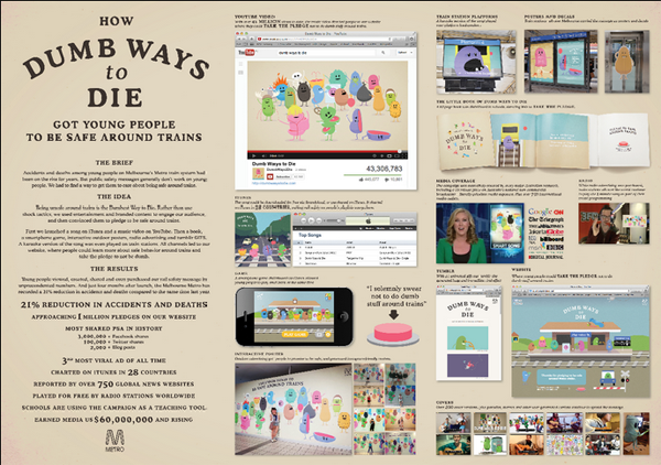 В первый же день награждения победителей австралийская компания McCann Melbourne (Мельбурн, Австралия) выиграла Гран-при в двух категориях – PR и Direct со своим роликом «Dumb Ways to Die», изготовленным для Metro Trains.