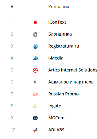 Первое место рейтинга заняло агентство iConText, серебро и бронзу получили Блондинка.ру и Регистратура.