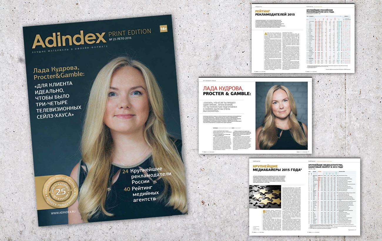 Журнал AdIndex Print Edition с 2016 года выходит в новом формате. Помимо разделов о ключевых результатах и показателях отрасли, появились новые рубрики, посвященные профессионалам, занимающим ведущие позиции на рынке рекламы и маркетинга.