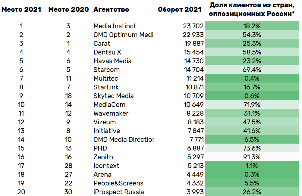 РЕЙТИНГ КРУПНЕЙШИХ МЕДИААГЕНТСТВ ПО ИТОГАМ 2021 ГОДА