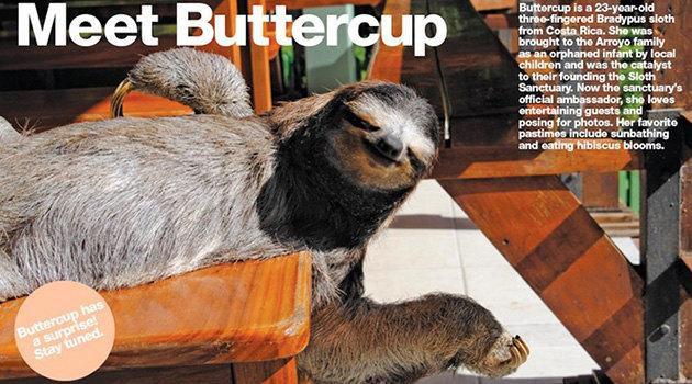 На снимках Лютик удобно расположился на деревянной скамье, подставив свое тело солнечным лучам. Глядя на ленивца, хочется немедленно последовать его примеру, хотя бы на один день оставив все проблемы и заботы. Рекламные фотографии сопровождает и история жизни 23-летнего Лютика: ленивец был сиротой, когда местные дети принесли его семье Арройо, открывшей заповедник как раз после его появления.
