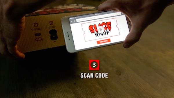 Клиенты компании получали свой заказ в специальной упаковке, и все, что им оставалось – вставить прилагающуюся линзу в специальное отверстие, просканировать QR-код, установить телефон на подставку и наслаждаться предложенными компанией фильмами. Всего было представлено четыре дизайна коробки, за каждым из которых скрывался свой фильм от Pizza Hut.