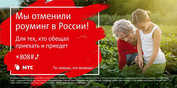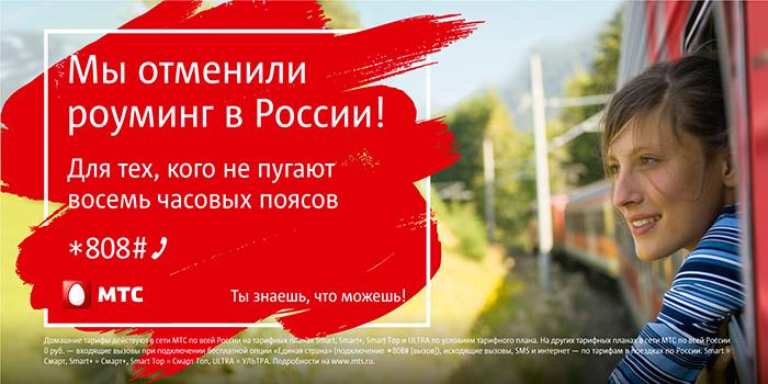 Абоненты, подключенные к тарифам Smart, Smart+, Smart Top и ULTRA, могут звонить, выходить в интернет, отправлять сообщения в поездках по стране по домашним тарифам, причем звонки внутри сети МТС бесплатные и безлимитные. Для пользователей других тарифных планов запущена бесплатная опция «Единая страна», которая обнуляет путешествующим по России все входящие вызовы.