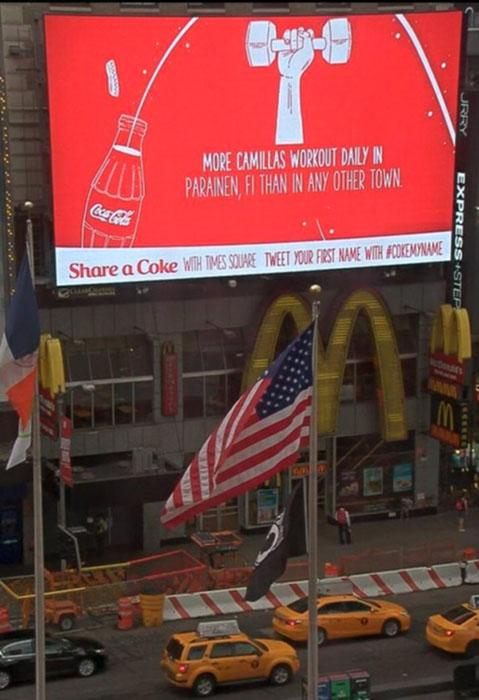Coca-Cola и Google разместили на Таймс-сквер персонифицированную рекламу