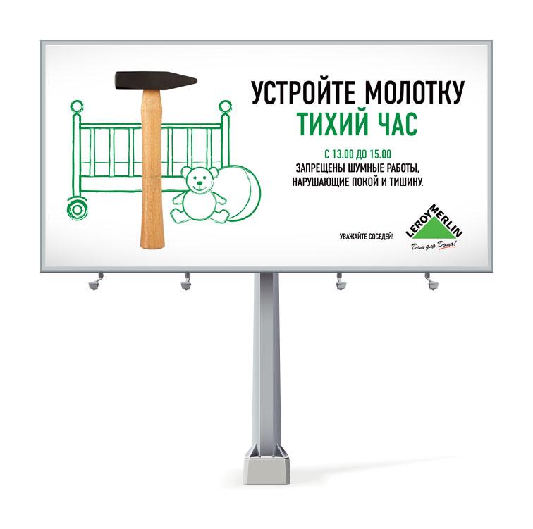 В рамках проекта компания разместила в Москве наружную рекламу, в которой говорится о том, что следует устраивать перерыв в проведении шумных работ по выходным и праздникам, а также с 19 вечера до 9 утра и с 13 до 15 часов по будням и субботам, как это законодательно установлено мэрией Москвы.