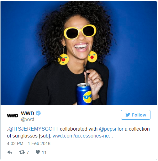 Pepsi планирует использовать традиционные и digital-каналы коммуникации. Также нас ждут нестандартные проекты: например, Pepsi объединилась с модельером Джереми Скоттом для создания коллекции очков, вдохновленной PepsiMoji.