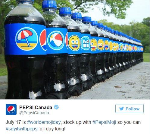 Чтобы отпраздновать «Всемирный день эмоджи» (17 июля) в прошлом году Pepsi выпустила клавиатуру #PepsiMoji, которая по-прежнему доступна в App Store и Google Play.