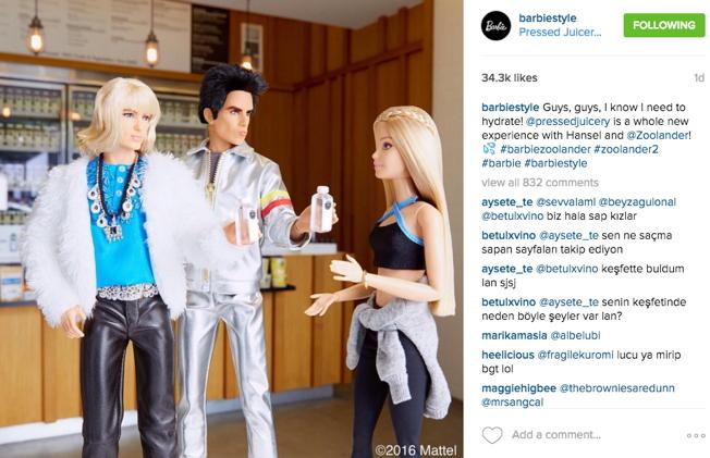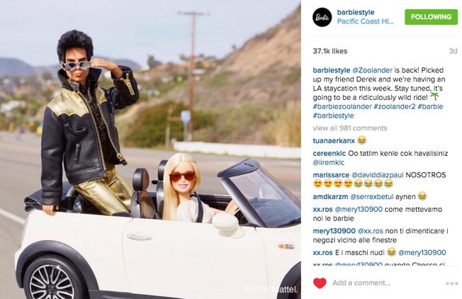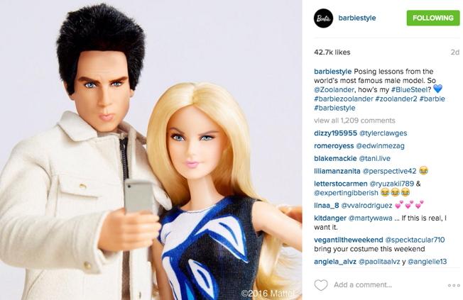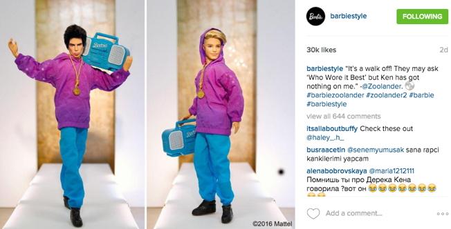 После рекламы фейкового парфюма Zoolander № 2, рекламы Fiat 500X и невероятного появления героев Бена Стиллера и Оуэна Уилсона в показе Valentino, Дерек Зуландер добрался до официального Instagram-аккаунта Барби. И это перед официальной премьерой фильма «Образцовый самец 2», которая состоится 11 февраля в мире, а в России – на неделю позже, 18 февраля.