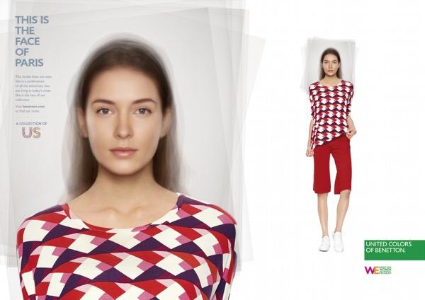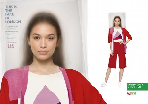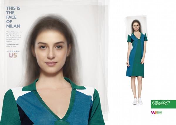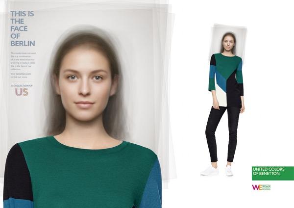 В течение многих десятилетий компания Benetton была известна тем, что в ее рекламе появлялись модели самых разных национальностей. Этническое разнообразие легло в основу концепции United Colors. Однако в новой кампании итальянский дом моды решил отказаться от услуг реальных моделей и использовал портреты среднестатистических жителей различных городов планеты, сгенерированные на компьютере, пишет Creativity Online (AdAge).