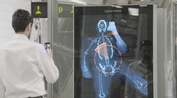 Цифровой рекламный билборд от Microsoft, установленный в Стокгольме, стремится изменить эту ситуацию и помогает корректировать осанку. С помощью технологии Kinect вмонтированное в рекламу устройство способно показать неправильное положение позвоночника прохожих, и даже исправить его в реальном времени. Рядом с билбордом стоит профессиональный ортопед, и объясняет всем заинтересовавшимся, как правильно распределить вес своей поклажи и оптимально ее упаковать.