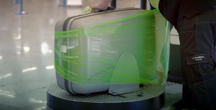 В аэропорту многие путешественники оборачивают багаж прозрачной пленкой из страха, что они повредятся, откроются или будут просмотрены носильщиками, которые могут что-то украсть. Компания Samsonite установила в аэропорту Парижа стенды, где путешественникам предлагалось упаковать чемоданы бесплатно, но в обмен на чемодан наклеивали стикер со слоганом: «Я бы хотел Samsonite».