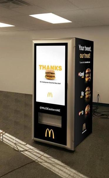 В Бостоне появился автомат по бесплатной выдаче «Биг Маков», пишет Boston Globe. Чтобы получить бургер, необходимо залогиниться в Twitter и оставить твит с отзывом об акции и продукте.