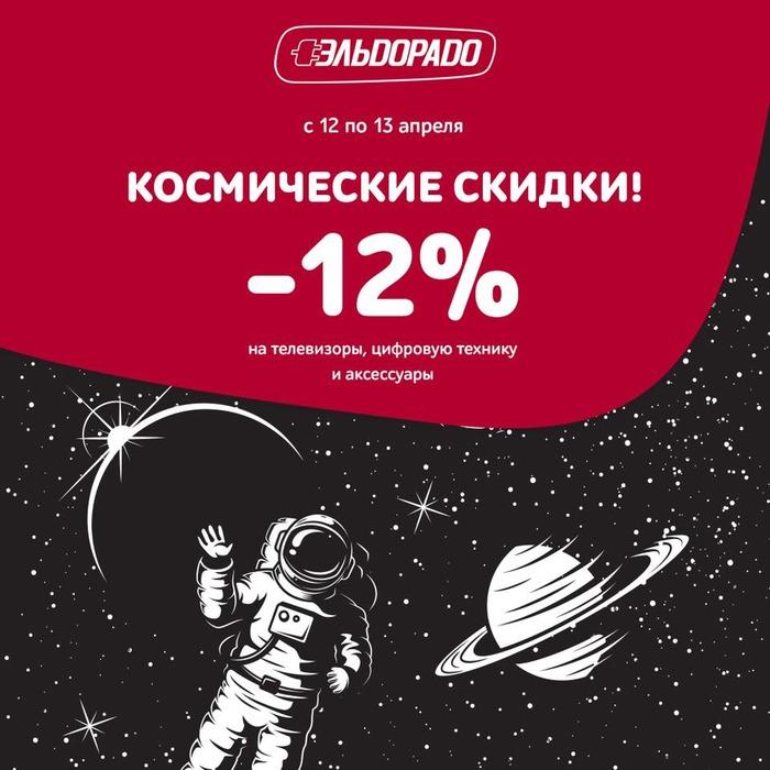 Ритейлер «Эльдорадо» установил 12%-ную скидку на телевизоры, цифровую технику и аксессуары. Акция продлится сегодня и завтра.