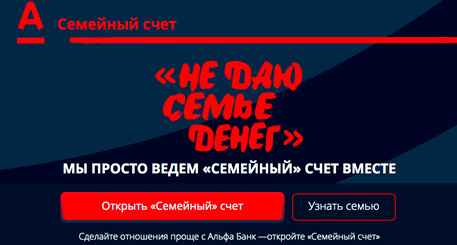 Для рекламы нового продукта Альфа-банк совместно с проектом StickerRide запустил на дороги Москвы 200 брендированных автомобилей. Водители рекламных авто выбирали дизайн с необычными слоганами «Не даю мужу денег» и «Не даю жене денег»: фразы вызвали внимание прохожих и волну обсуждений. Под этим крылся призыв открыть «Семейный счет», который позволяет семье совместно вести накопления и траты. Каждый член семьи получает доступ к счету через мобильное приложение и собственную карту Альфа-банка.