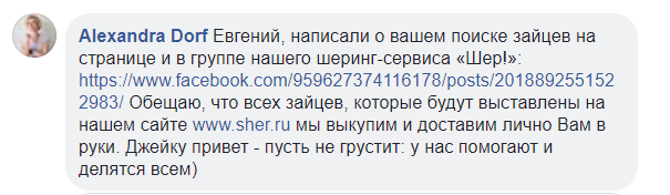 Более креативными оказались сервисы объявлений. В компании «Юла» запустили акцию по сбору таких плюшевых зайцев. «Если у вас дома лежит эта игрушка, то вы можете выложить его на Юлу, чтобы хозяин Джейка порадовал свою собаку!», — отмечается в сообщении компании. «Юла» пообещала начислить 500 внутренних бонусов всем, кто сделает так в ближайшие 48 часов.