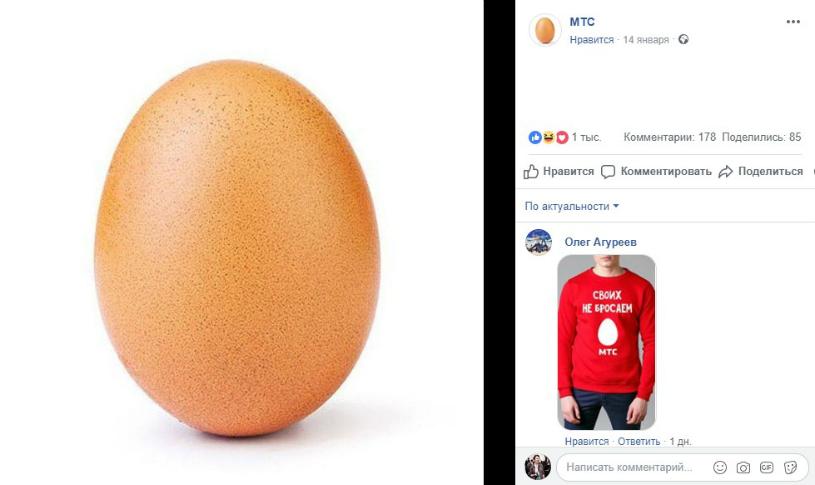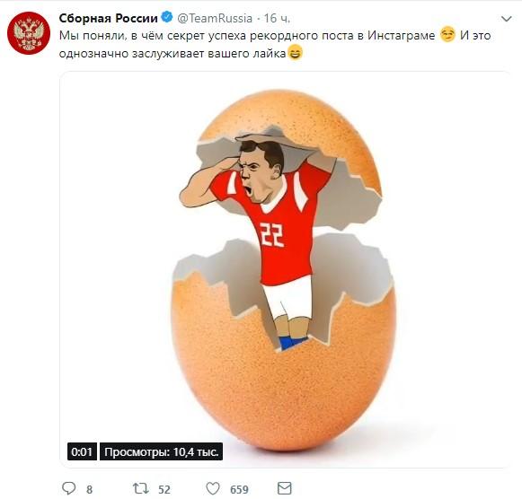 На акцию популярного яйца отреагировали и в России. Например, ситуативные посты выложили МТС, «Сода пищевая», сборная России по футболу, Дмитрий Маликов, Иван Ургант.