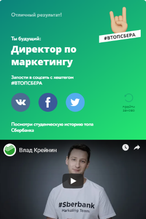 Для продвижения проекта банк запустил кампанию: «Попади в топ Сбера». В рамках проекта была снята серия роликов, где топ-менеджеры Сбербанка рассказывают о старте своей карьеры: первая стажировка, первые успехи. Пользователям предлагается пройти тест и узнать, на кого из руководителей банка они похожи. Свои студенческие истории рассказали: президент Сбербанка Герман Греф, директор по маркетингу Владислав Крейнин, заместитель председателя правления банка Белла Златкис, ректор корпоративного университета Сбербанка Валерия Заболотная и другие.