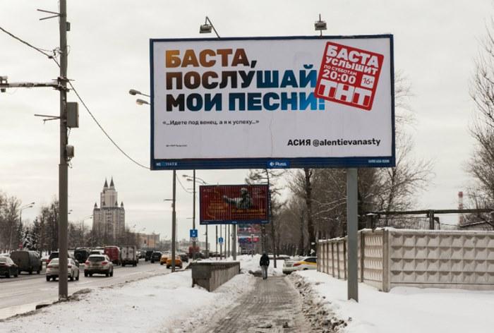 «Баста, послушай мои песни!». ТНТ запустил наружную рекламу без упоминания бренда