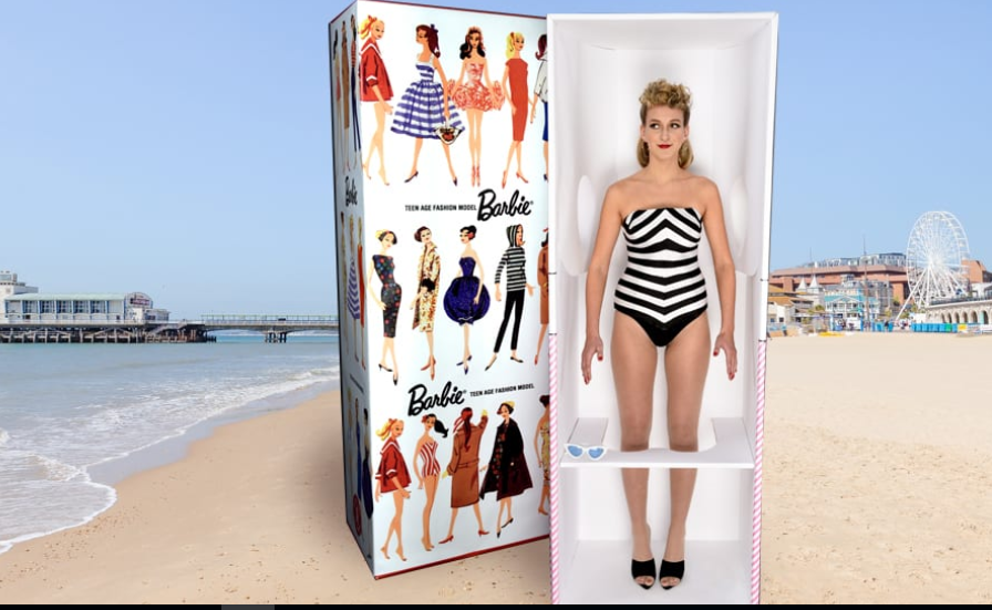 Инсталляция представляет собой коробку с «живой» Барби. Модель нарядили в полосатый бело-черный купальник, уложили волосы в конский хвостик и «поставили» в коробку, аналогичную оригинальной (1959 г.). Инсталляцию приурочили к 60-летию легендарной куклы. Увидеть ее можно с 9 по 12 марта на пляже Борнмута.