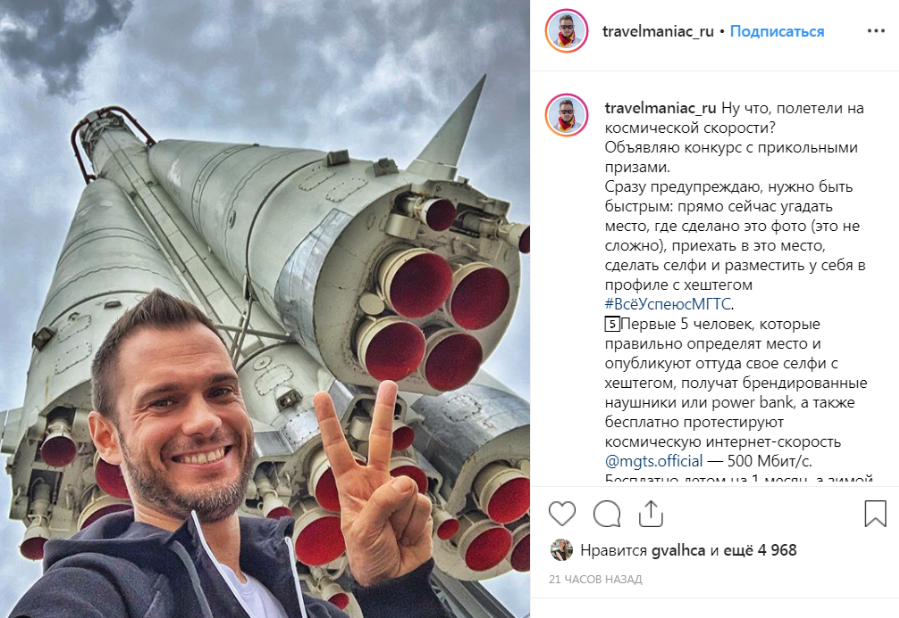 МГТС запустила летний квест по Москве в Instagram. По условиям акции, пользователи соцсети будут искать локации, зашифрованные на фото блогеров. Разгадав послание, участники должны будут найти место, сделать селфи и опубликовать его в своем аккаунте селфи с хэштегом #ВсёУспеюсМГТС.
