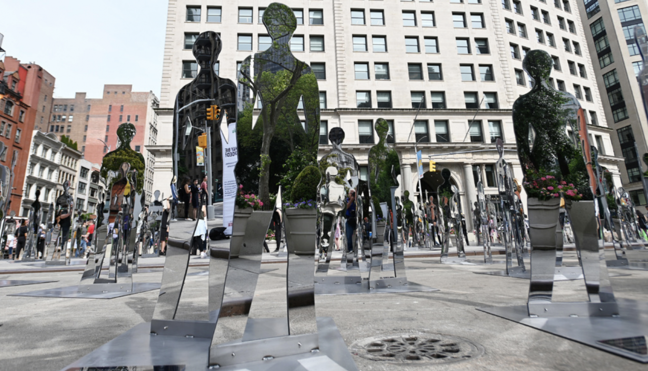 Ранее аналогичная инсталляция появилась в Нью-Йорке. Выяснилось, что из 145 памятников в этом городе лишь 5 посвящены женщинам. Чтобы компенсировать эту разницу, сервис Hulu возвел 140 статуй. Это были обезличенные женские силуэты, в зеркальной поверхности которых могла себя увидеть любая проходящая мимо американка.