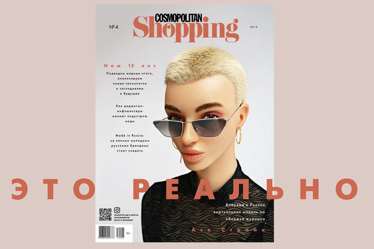 Глянцевое издание Cosmopolitan Shopping в честь своего юбилея первым в России выпустило номер с виртуальной моделью на обложке. Лицом выпуска стала Ася Страйк.
