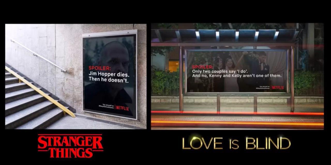 Авторы проекта предложили концепт рекламы для Netflix. Это баннеры, которые разместят в местах массового скопления людей (в общественном транспорте, на остановках и улицах). На них предлагается печатать краткое содержание новых серий популярных фильмов. Например, о том, что шериф Джим Хоппер из сериала «Очень странные дела» умрет.
