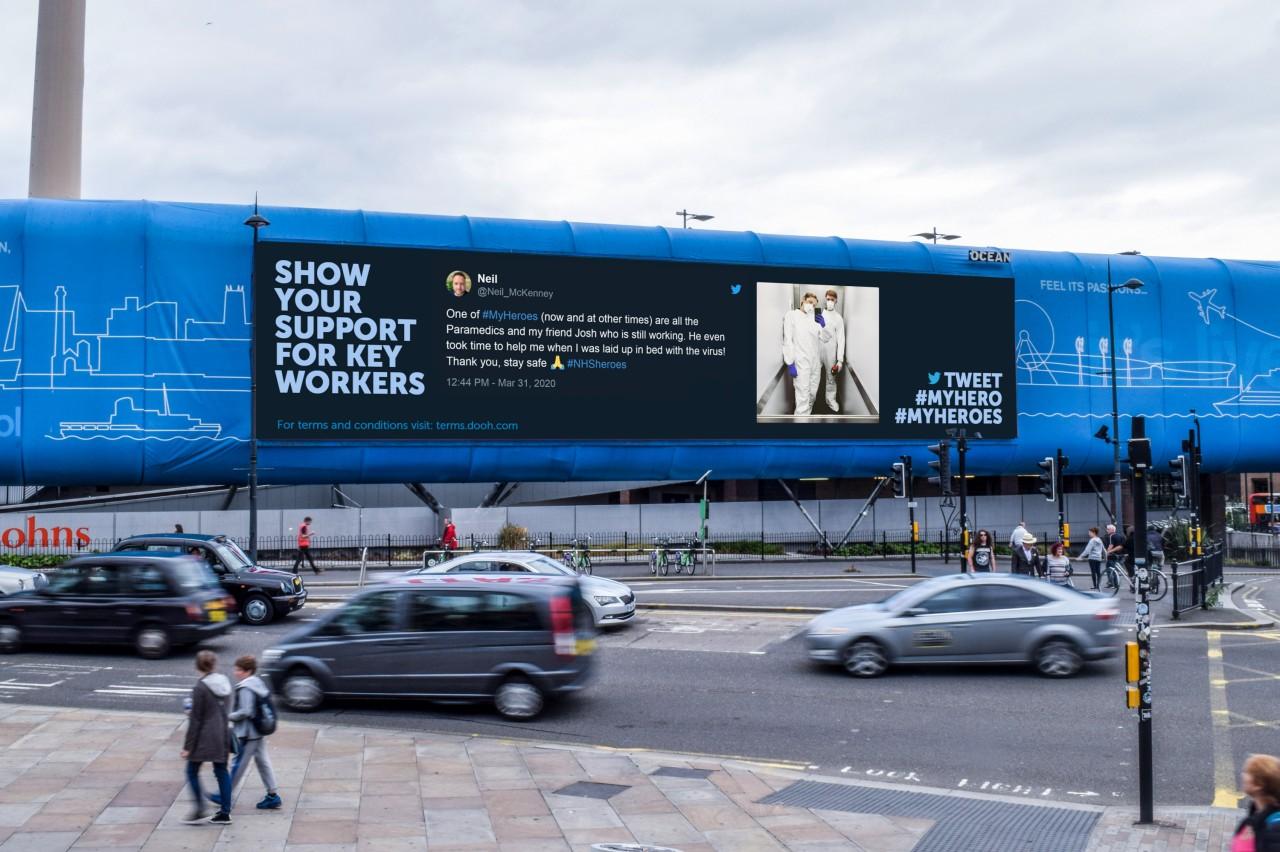Однако это не единственная инициатива outdoor-операторов. Kinetic и DOOH.com предложили владельцам цифровых конструкций транслировать публикации из соцсетей с хештегом #MyHeroes. На призыв откликнулись Boomerang Media, Clear Channel UK, Hi! Street Digital Media, Ocean Outdoor и Open Media.