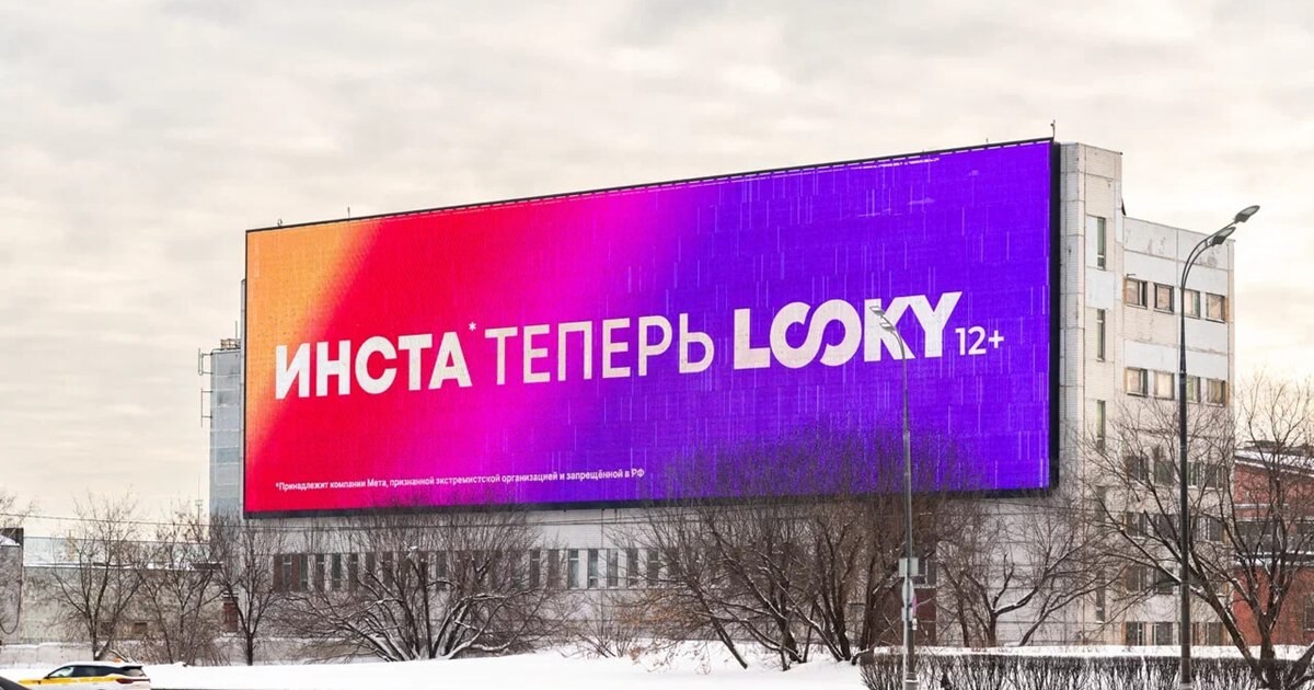 Looky представила медиабаннеры с текстом: «Инста* теперь Looky». Роликитранслируют на медиафасадах Москвы — на Шоссе Энтузиастов и Бережковскойнабережной. Креатив разработан внутри команды Looky.