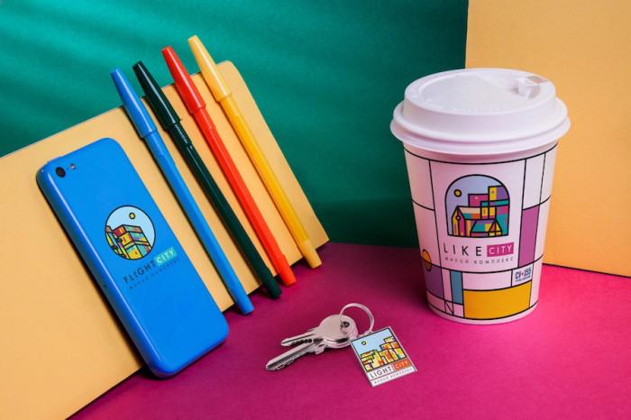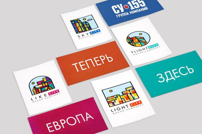 Желтый солнечный круг в логотипах CITY создает визуальную рифму с логотипом «СУ-155».