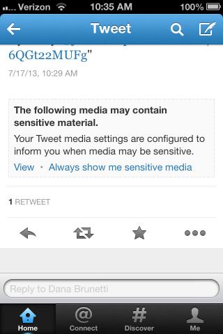 Теперь все материалы Twitter, в которых есть изображение «обнаженной натуры, насилия или медицинских манипуляций» по-умолчанию скрыты от пользователей и снабжены предупреждающей надписью.