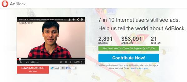 На официальном сайте компании AdBlock начался сбор денег сбор денег на рекламную кампанию продукта от создателей сервиса блокировки интернет-рекламы