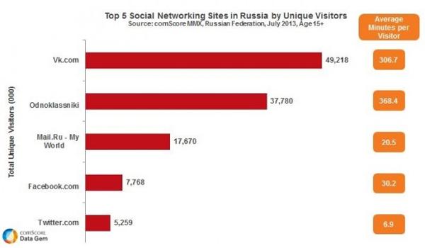 Как сообщает агентство аналитики ComScore, в июле 2013 года общая численность пользователей социальных сетей в России приблизилась к 56 млн человек, что составляет 85% от общей интернет-аудитории страны