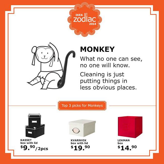 IKEA продолжает сочетать свой аскетичный дизайн и псевдодружелюбие с рекламной кампанией, которая стремится помочь людям совершать покупки согласно их знаку по китайскому гороскопу