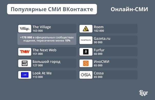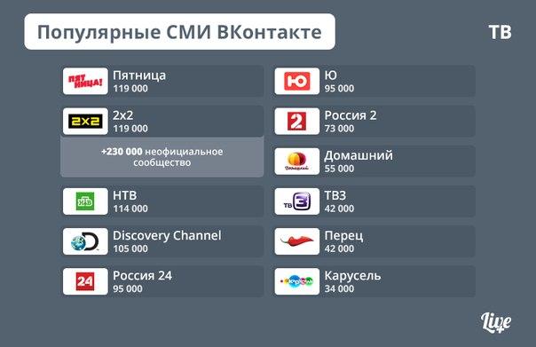 Составлен первый рейтинг популярности СМИ во «ВКонтакте»