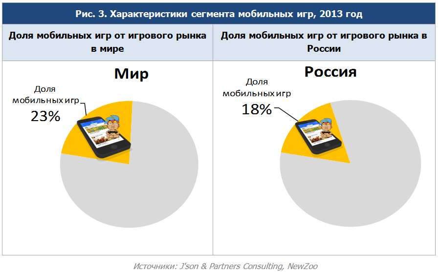 Доля мобильных игр на российском игровом рынке достигла 18% в 2013 году, по данным J’son & Partners Consulting.